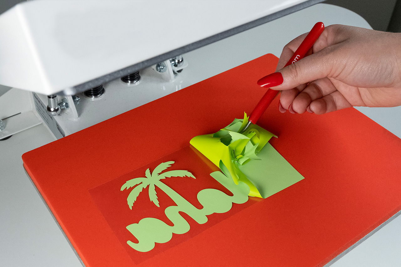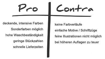 Bei diesem Druckverfahren wird das Motiv aus der jeweiligen Folie geplottet und bei ca. 180°C auf das Textil gepresst.